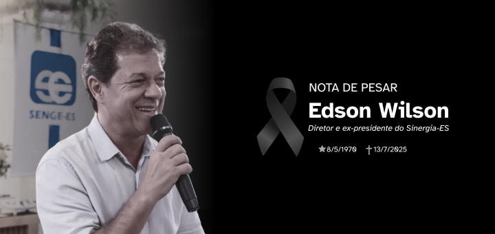 A Diretoria do Sindicato dos Engenheiros no Estado do Espírito Santo (Senge-ES) registra com profundo pesar o falecimento do diretor e ex-presidente do Sinergia-ES, nosso companheiro de luta sindical Edson Wilson (Edinho).